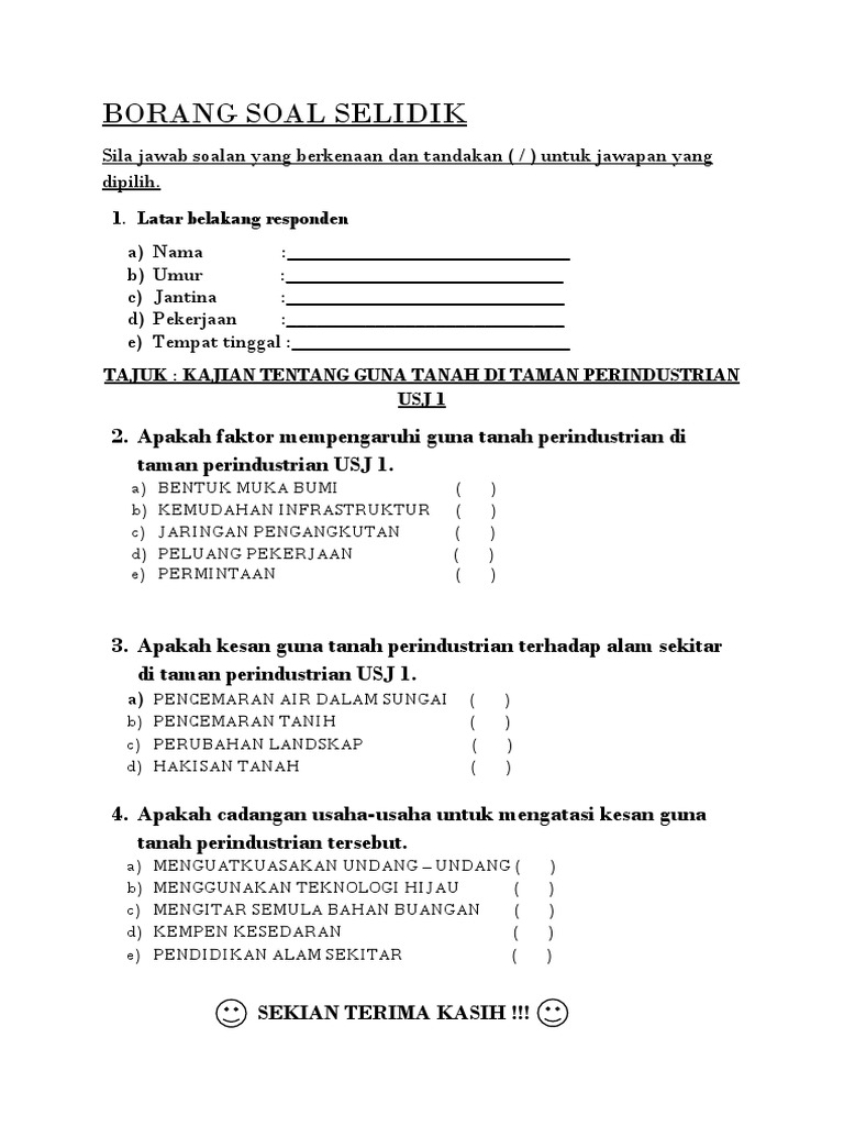 Doc Borang Soal Selidik Ahmad Sholihin Academia Edu from 0.academia-photos.com Hans jenny (1941) menjelaskan bahwa tanah dalam proses pembentukannya membutuhkan lima faktor, yaitu iklim, organisme, relief (topografi), bahan induk. By martina, 20 oktober 2019. Pembangunan guna tanah komersil telah dikenal pasti iaitu sepuluh faktor. Faktor yang mempengaruhi ciri khas kerajinan di suatu daerah. Faktor objektif, yaitu faktor yang secara umum diakui sebagai faktor yang mempengaruhi konsumsi. Tanah longsor biasanya terjadi di wilayah yang terdapat banyak lereng dengan kemiringan di atas 45 derajat, meskipun tak tertutup kemungkinan juga bisa terjadi pada tanah datar namun peluangnya lebih kecil. Faktor lain termasuk kemudahan pendidikan, peluang pekerjaan, kesihatan, pengangkutan awam. Faktor yang menarik seseorang untu menabung adalah suku bunga.